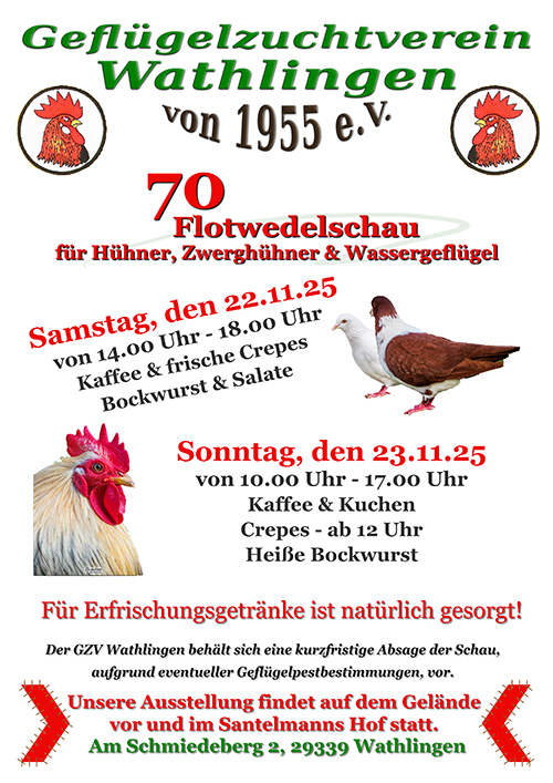 Wir freuen uns, dass das Interesse an der Geflügelhaltung aktuell so hoch ist. Vor allem bei Familien mit Kindern. Wie wunderbar ist es, das selbst aus dem Nest genommene Frühstücksei zu verputzen. Auch die Entwicklung der Hühnchen vom Ei bis zum erwachsenen Tier zu verfolgen, ist für die Kleinen besonders spannend. Darüber hinaus ist die Geflügelhaltung auch eine Möglichkeit, erste Verantwortung gegenüber Mitgeschöpfen zu übernehmen. Entdecken Sie auf den folgenden Seiten unseren Verein. Wir freuen uns sehr, wenn Sie Fragen zur Geflügelhaltung haben, oder sich vorstellen können, an unserem Vereinsleben teilzunehmen. Sprechen Sie uns gern über unsere Kontaktseite an. Sollten Sie Interesse an der Haltung von Rassegeflügel haben, zu Hause aber die Möglichkeit dazu fehlen, können in unserer Anlage geeignete Parzellen gemietet werden. | ![]() |